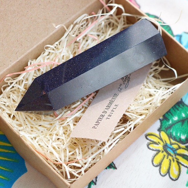 小さなゴールドのラメを散りばめたような とても神秘的なストーンです★ サイズ 約10cm 輸送中に付いてしまったと思われる小さな傷がございますが、 大きなダメージはございません。 クリスタルチューナー・月光浴・ホワイトセージにて 浄化済みです。
