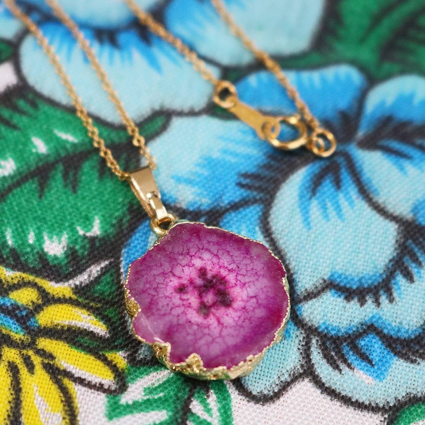 元気を貰えそうなビビットカラーのピンクのドゥルージーアゲートを、