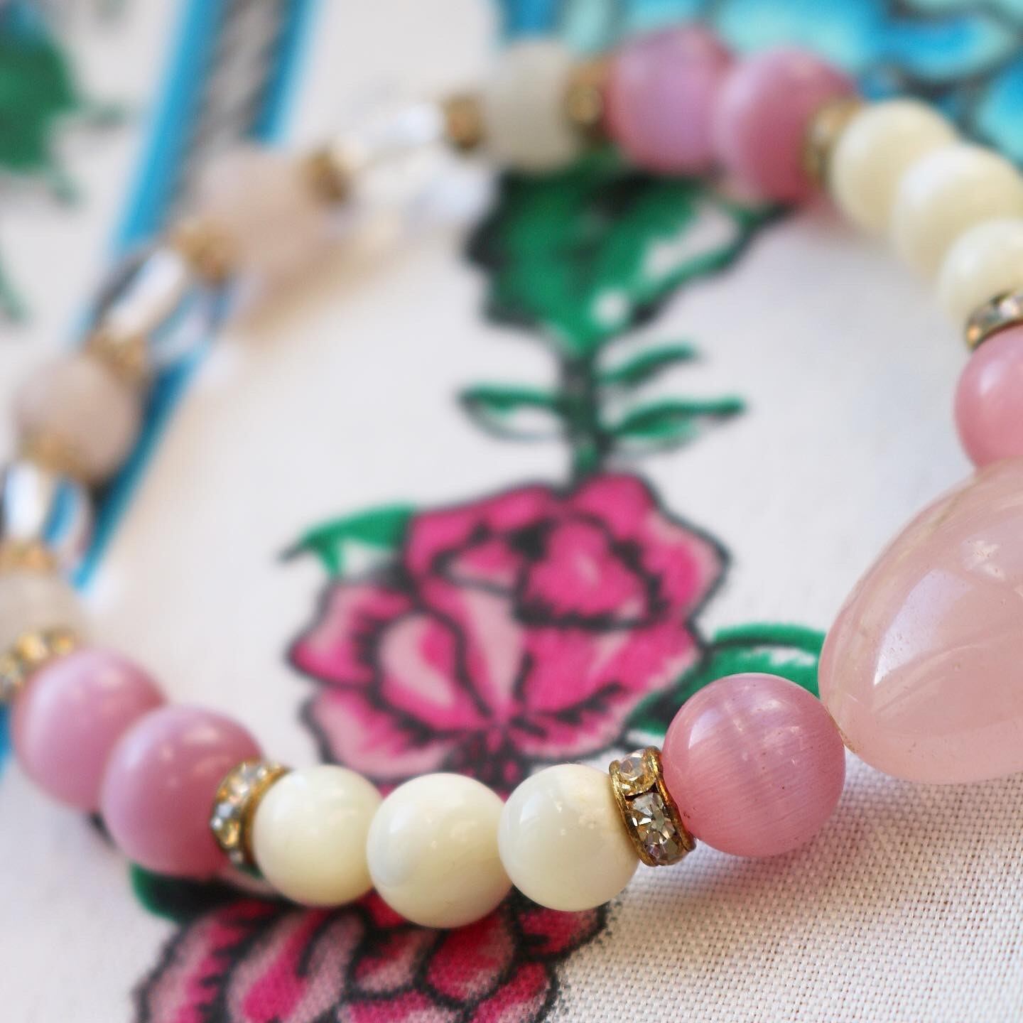 ピンクキャッツアイ、ローズクォーツ、マザーオブパール、水晶を組み合わせて